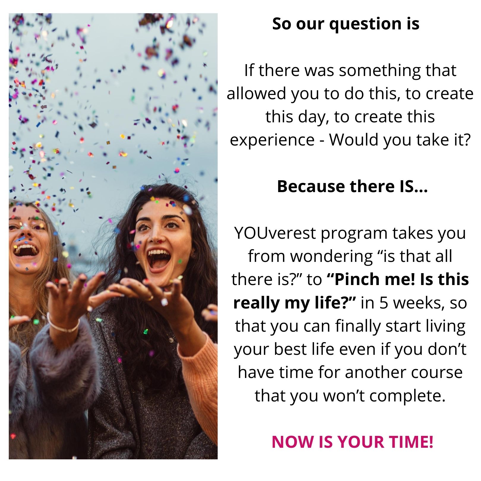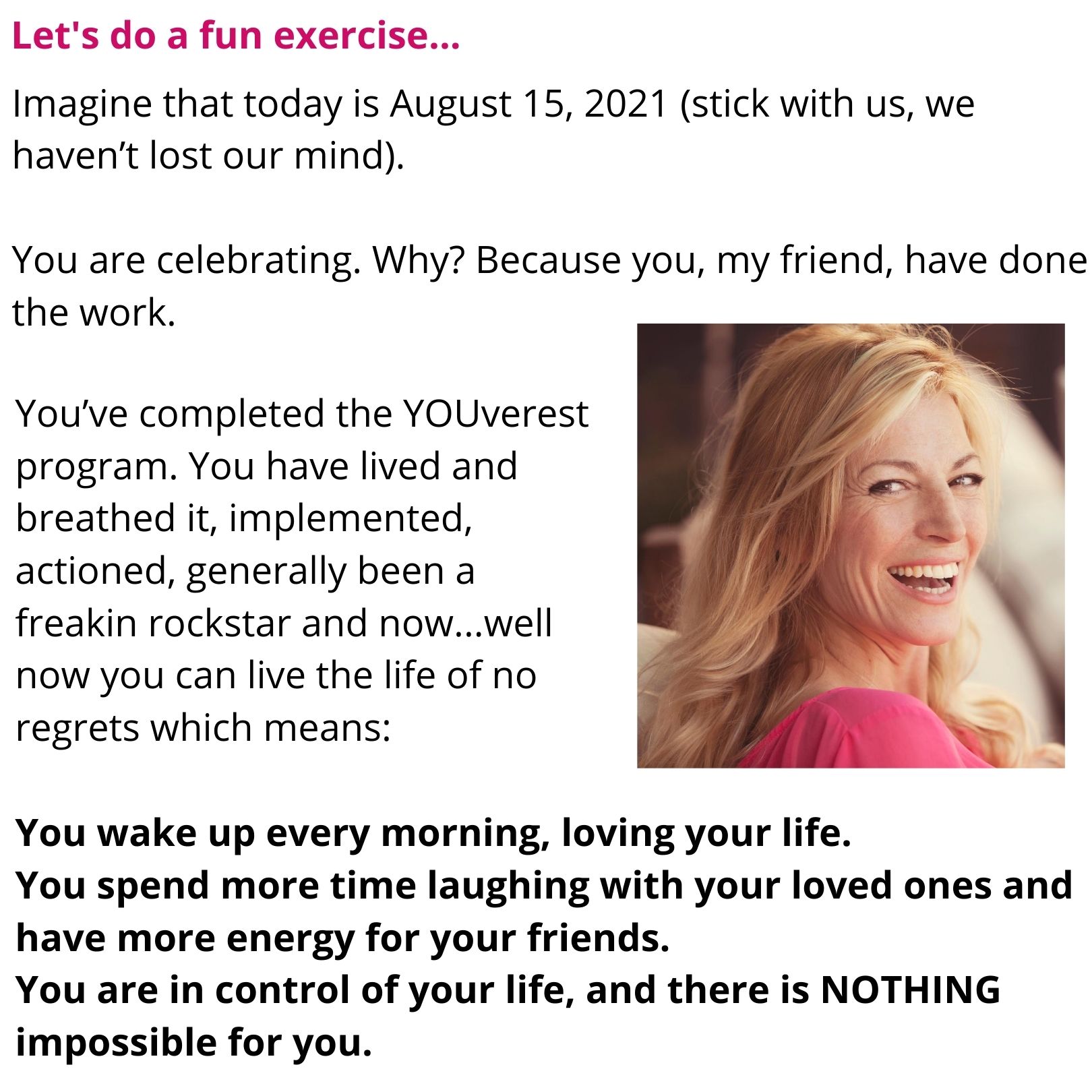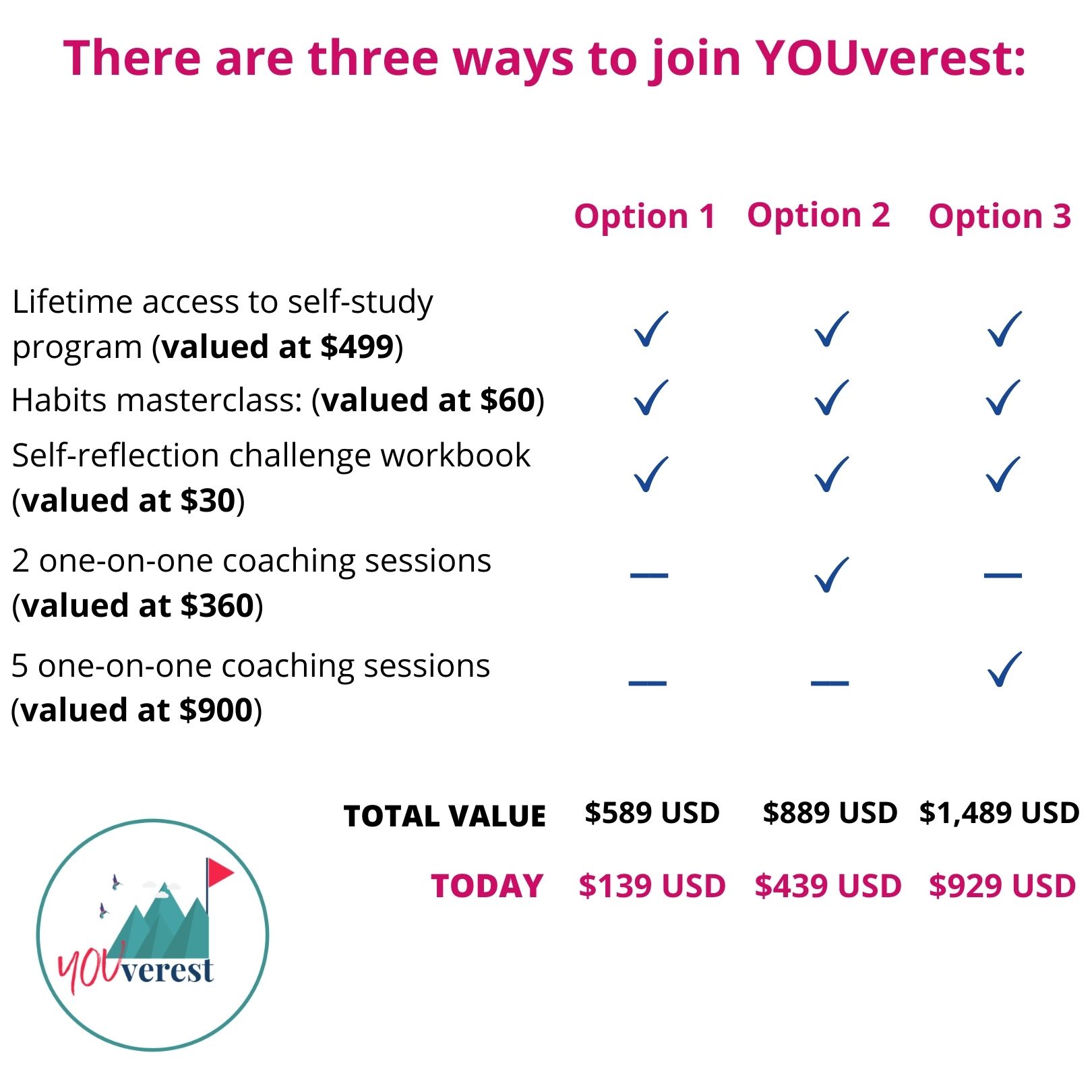 Because of YOUverest I am more conscious of how I am thinking and feeling in the present moment. The program helped me reconnect with my WHY. I love that encourages introspection self-discovery through fun and insightful exercises.